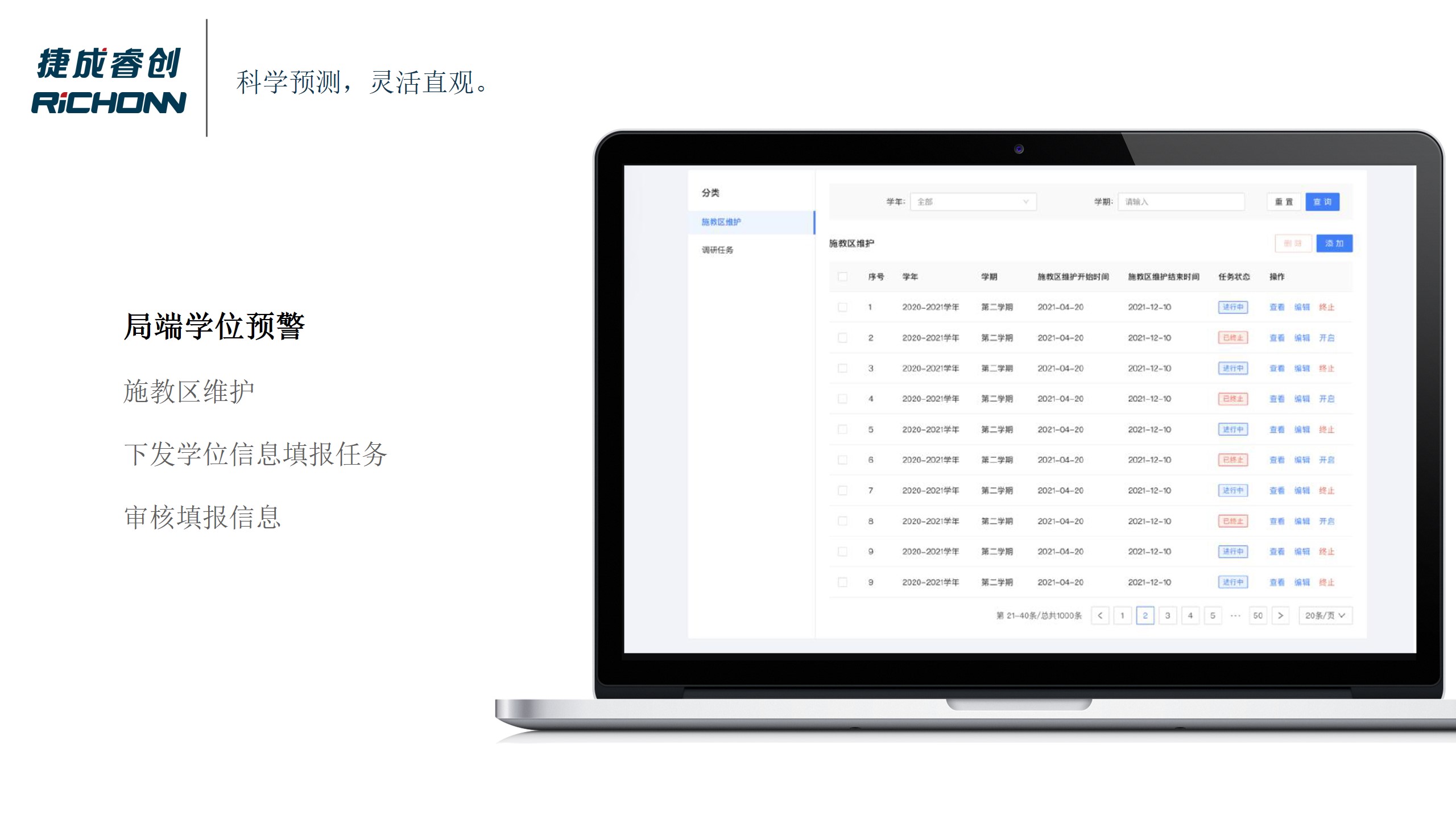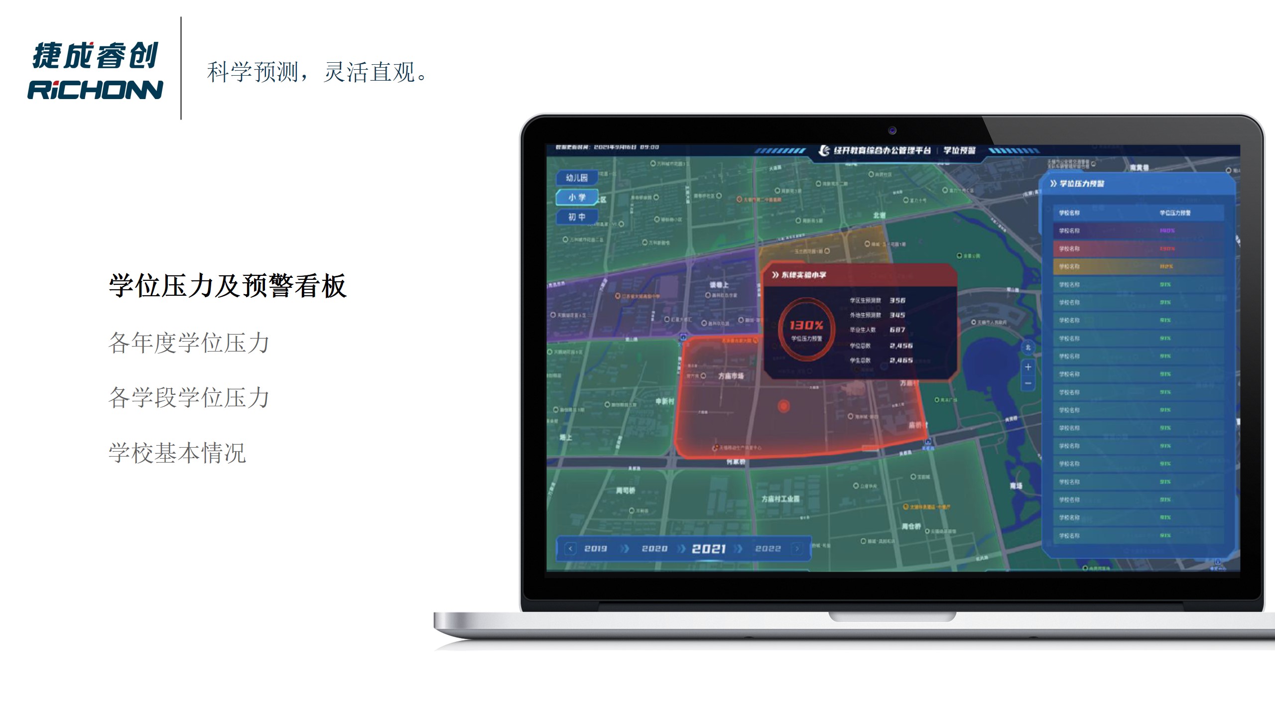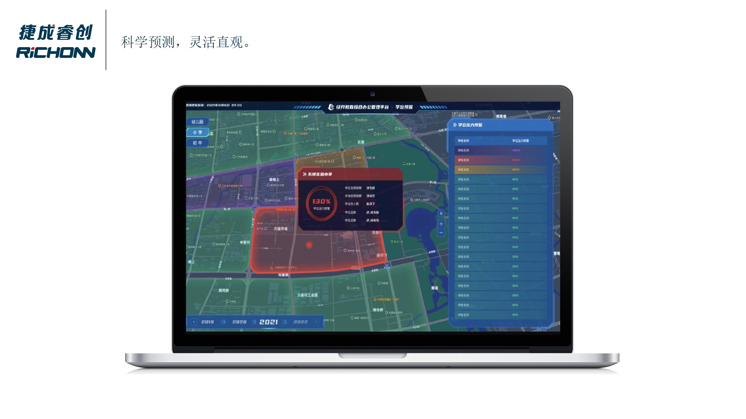区域学位预警系统,,,,提供数据分析应用,,协助教育部门开展高效率调研,,,,直观展示预警信息,,,为决策者均衡学位资源提供重要数据支撑,,实现科学预测,,,有效管理。。。。