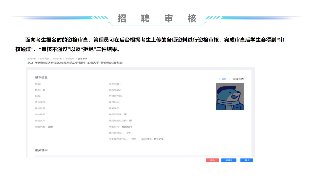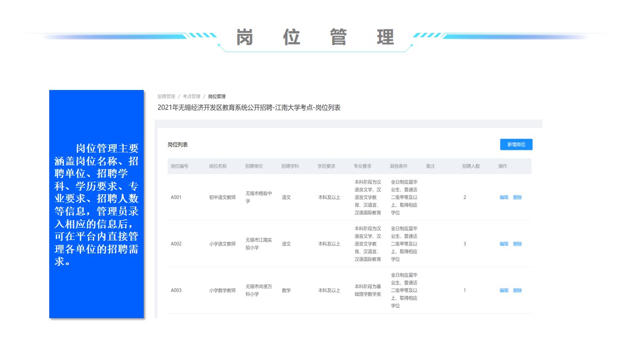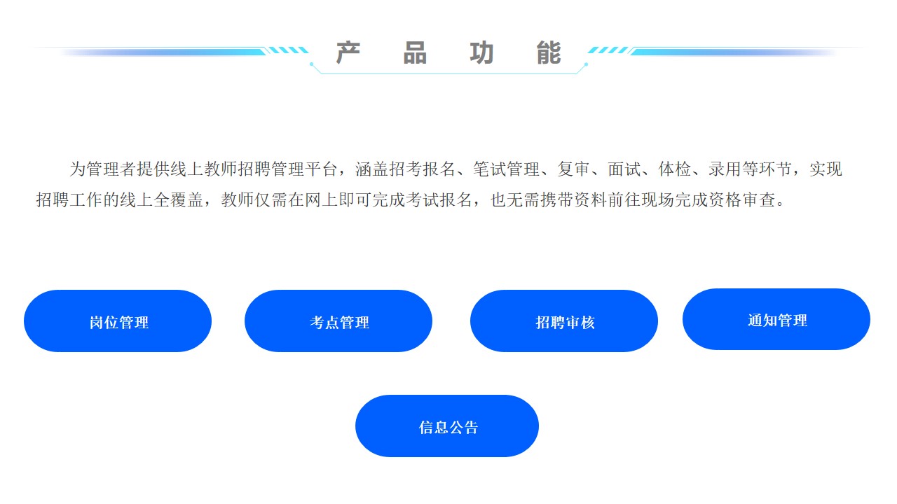 教师招聘系统,,,一款线上全覆盖的招聘管理平台,,,通过岗位管理、、招聘审核、、、通知和信息公告等功能,,提高教师招聘效率和品质,,,为教育行业的招聘管理提供可靠的动态数据和决策依据。。。